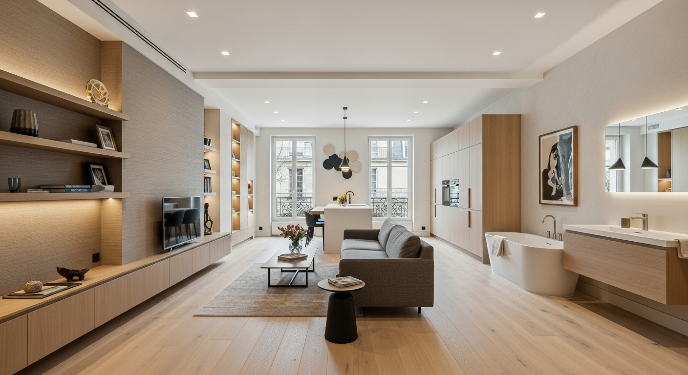 - Première Rencontre & Étude Préliminaire : Un échange approfondi pour comprendre vos besoins et inspirations. Une visite technique évalue la faisabilité et les contraintes de votre logement en Île-de-France.